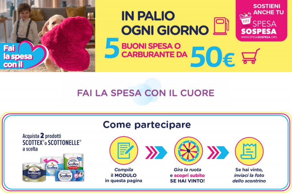 Con Scottex e Scottonelle puoi vincere Buoni spesa e buoni carburante IP da 50€. Vuoi sapere come fare? Semplice, partecipando al concorso “Fai la spesa con il cuore”. Ma vediamo come partecipare e richiedere i buoni.